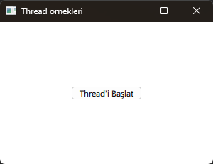 Thread örneklerimizde basit bir arayüz ve buton üzerinden ilerleyeceğiz. Arayüzdeki buton arkaplanda bir threadi çağıracak ve fonksiyonun yürütülmesini sağlayacaktır. Thread ile yapacağımız örneklere geçmeden önce thread olmadan arayüzün nasıl bir tepki vereceğini görelim.