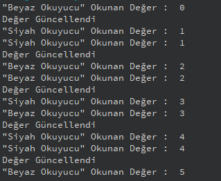 Yukarıdaki kodlar, iki adet thread oluşturarak bu thread’lerin aynı anda çalışmasını ve ortak bir değişkeni sırasıyla arttırmasını sağlar.